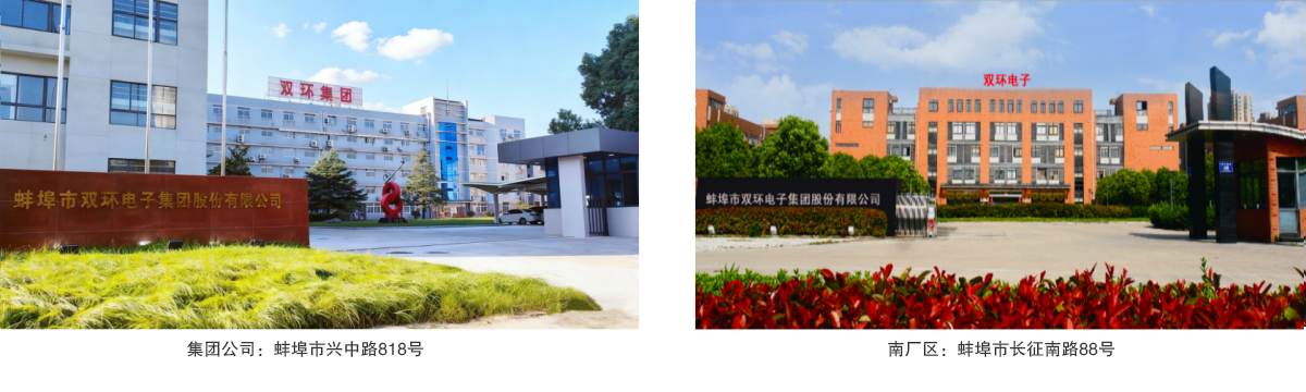 蚌埠市双环电子集团股份有限公司成立于1990年,2015年改制为股份有限公司,位于蚌埠高新技术产业区,专业从事各类电阻器、电感器、高压直流继电器等电子元件产品的研发、生产和销售,产品广泛应用于航空、航天、船舶、通信、自动控制、仪器仪表、轨道交通、充电桩、新能源汽车、家用电器等领域。公司为国家高新技术企业,2009年度进入中国电子元件百强企业行列;公司是国内电子元件行业骨干企业,中电元协电阻电位器分会副理事长单位,全国电子设备用阻容元件标准化技术委员会委员单位。2018年获安徽省标准化示范企业称号;2019年获安徽省绿色工厂、第四届蚌埠市政府质量奖等荣誉称号,2021年获得工信部“专精特新重点小巨人”企业称号,2022年获得第七届中国工业大奖项目表彰奖。双环集团生产的精密电阻器多年来成功为“神舟”系列载人飞船及“嫦娥”探月工程配套。
